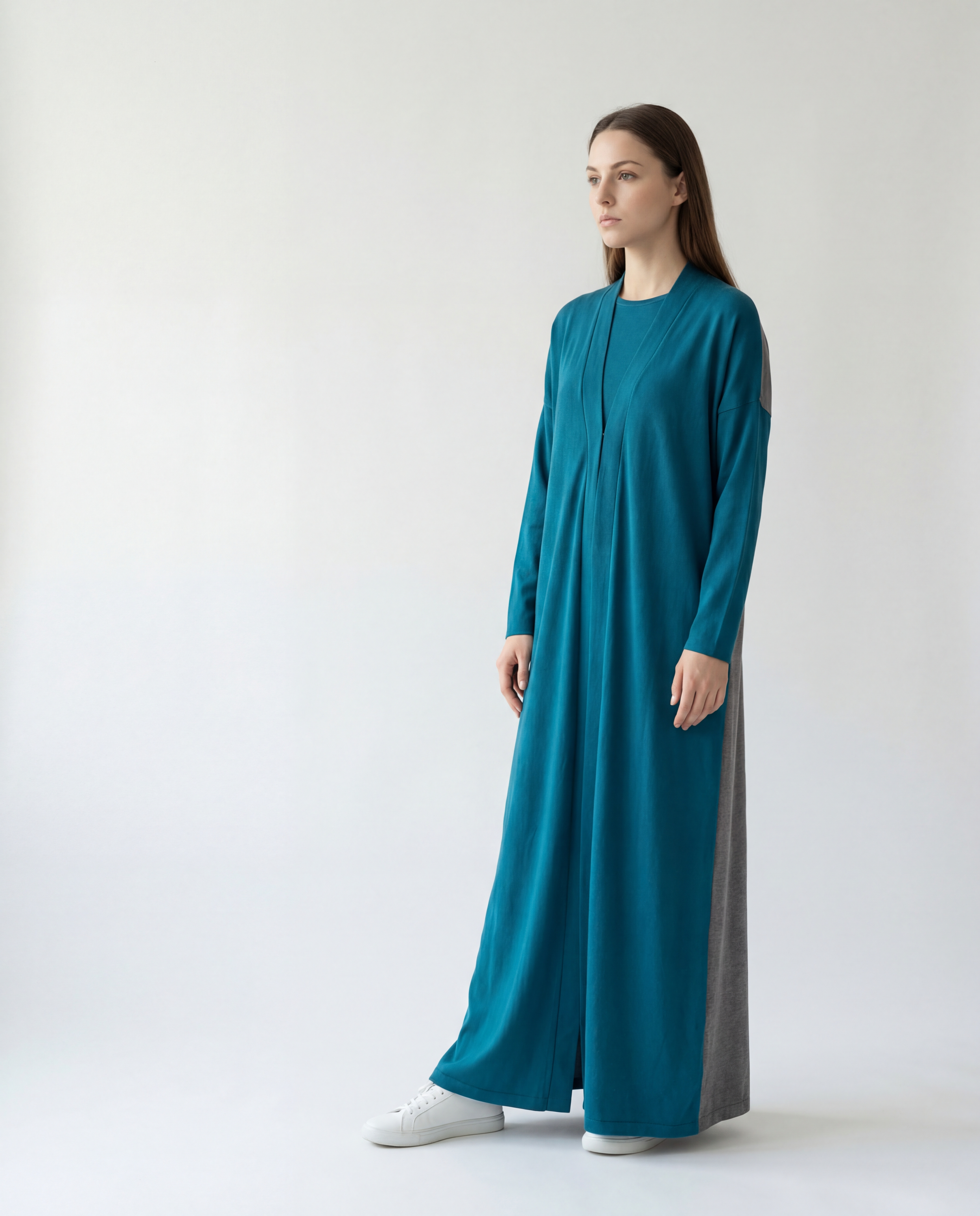 The PA-015 Blue Green Free Size Abaya combines elegance and practicality, featuring a versatile, flowing design perfect for any occasion. Crafted with high-quality fabric, this abaya offers both comfort and style. Its unique blue-green hue adds a touch of sophistication.